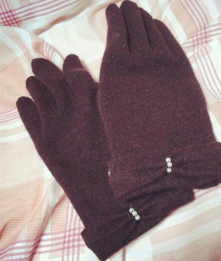 この冬のお気に入りファッションアイテムを紹介します。 しまむらで購入したブラウンの手袋です。 アンゴラを混ぜて作られているので少しごわごわするのが 気になりますが、970円という値段と 手首部分のさりげないリボンのデザインとレディな雰囲気 ばっちりの主張しすぎないパールがお気に入りポイントです。 暗めの茶色なので、いろいろなコーディネートに合い、 カラーものも合わせやすいです。