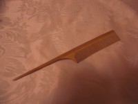 私のオススメ冬のヘアケアを紹介します* ザ・ダイソーで購入した桃の木からできた木製のミニコーム です。 プラスチック製のものは髪との間の摩擦で静電気を 生み、髪を痛ませると聞いたので、静電気防止のために 木製のコームを買いました^^ 静電気が発生しないおかげで、髪をとかしても頭頂部が ぺったんこになりすぎちゃうこともないし、コーム自体に ほこりがつきにくいのでとても便利です。 持ち運び用に使っています。