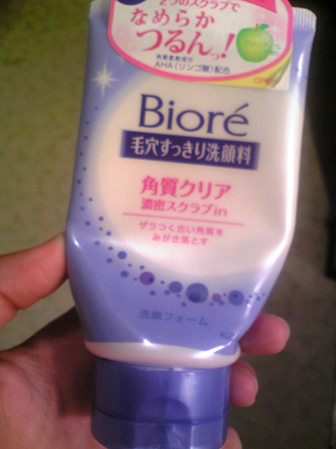 濃密スクラブinです。 梅雨時の朝って、起きると汗かいていますよね。 そんな時には、こういったスクラブ系の洗顔料を使用すると サッパリとします。 しかも!! ザラつく古い角質を落としてくれるので、 お肌がツルツルになります♪ 毛穴の汚れを洗い流してくれるので、 夜、クレンジングした後に使用するのもオススメです。 洗っている時の、ザラつき感がクセになります。 グリーンアップルの香りも癒されますよ。