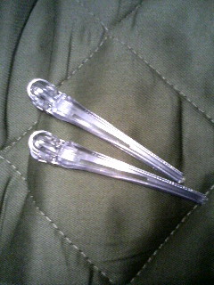 ◎おすすめヘアケアグッズ◎ メイクをするときにかかさない必須アイテムです。 私は前髪が長いので、メイクをするときに前髪が顔にかかるため いつもこれで前髪を止めています。 100円ショップで買いましたが、なかなか使えます。 300円くらいで売っているヘアクリップと変わりません。 家用と化粧ポーチ用に水色とクリアを買いました。 次買うときはピンクを買おうかな〜。