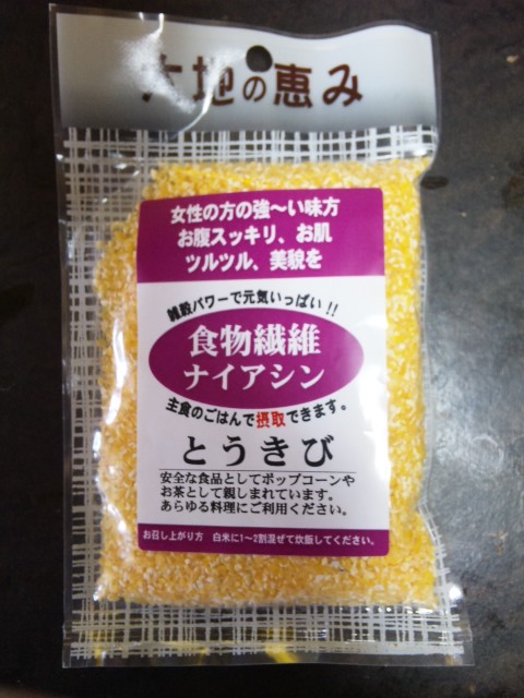 とうきびを白米に混ぜて炊いています。 ポップコーンにも利用されてるやつを、 細かく砕いたやつです。 ナイアシンという成分が不足すると口内炎ができやすいそう。 私、気を緩めると口内炎ができちゃうんだよね。 毎日これを食べて予防しています。 他にも消化系を促進する働きがあるので、 夏バテ予防にも効果的。 食物繊維も豊富なので、便秘予防にも。