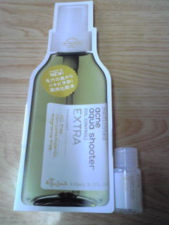 エテュセ 薬用アクネ アクアシューターEX(化粧水)のサンプルです。 オイルコントロールはさっぱりタイプの化粧水でオイルフリーです。 透明な化粧水です。 しっとりタイプの化粧水と同様に、同じラインの美容液を使った後で化粧水を使うのですが 個人的に、さっぱりタイプは使わないのでどうなんだろう?と思いながら使いましたが 使用後に肌を触ってみるとさらさら感がありました。