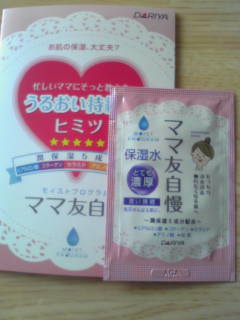 ダリヤ ママ友自慢 モイストプログラム保湿水(とても濃厚)のサンプルです。 とろみのある化粧水でした。 ヒアルロン酸やアミノ酸、コラーゲンなど配合されています。 使用して少し時間が経ってから、 肌がひりひりしてきましたので わたしには合わないみたいです。