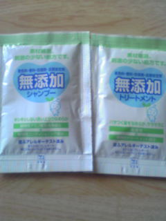 カウブランド 無添加シャンプー・無添加トリートメントのサンプルです。 シャンプーは透明で泡立ちはよかったですが 石けんシャンプーに慣れているせいか、泡切れが悪かったです。 トリートメントは白いクリーム状でした。 洗い終わってからは、しっとりした感じです。 無添加なので、刺激は少ないのでいいとは思います。