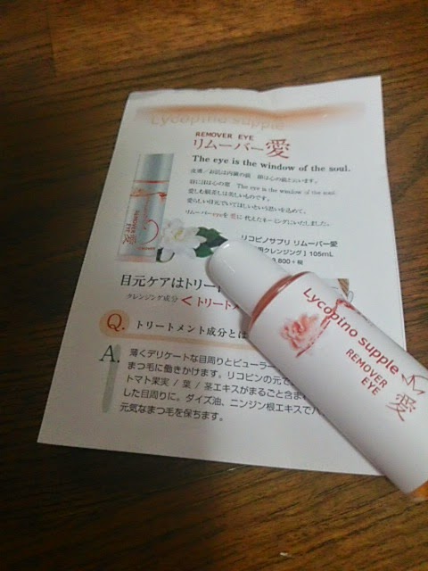2014年2月24日新発売の目元用クレンジング 「リコピノサプリ リムーバー愛(REMOVER EYE)」 7日間分30ml入をお試しさせていただきました。 トリートメント成分で出来た目元用クレンジング。 リコピン色のオイルで、2層式で、振って使うタイプ。 2層にしたのは敏感なアイゾーンを やさしくクレンジングする為なんだそう。 マスカラを落とすときは、目を閉じて、 液を含ませたコットンをまつ毛にあて、 まつ毛をはさむようにして液をなじませてふき取ります。 低刺激で優しい使用感なのに、 ウォータープルーフのアイメイ...