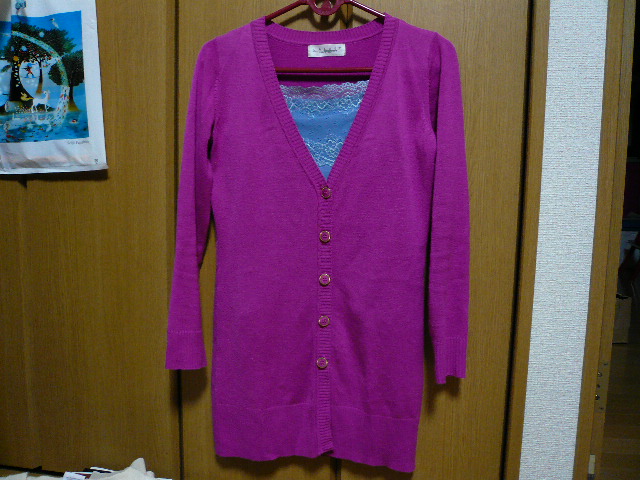 最近のド定番 濃いピンクがお気に入りで、中のキャミを替えたりして楽しんでいます。 日中はこれで丁度いいんですが、秋が深まったり、夜に外出する時は首に何かを巻いて調節します。