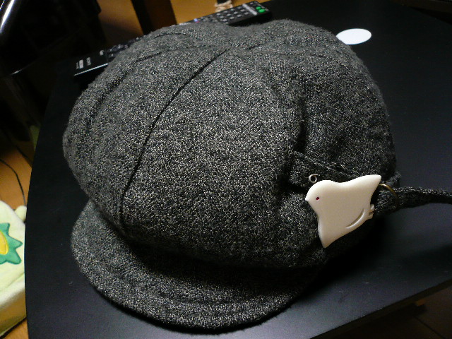 秋になったので最近は少し厚手の生地の帽子を使用中。 フリマで安く買ったので、あまり穴あくことは気にせずバッチだのブローチだのをつけて楽しんでいます。写真は千鳥の帯どめです。