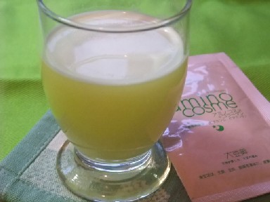 冷たく冷やした水で溶いてお風呂上りに飲んでいます。 やや、溶けにくいので、頑張って混ぜて下さい^^; 味は乳酸菌飲料の甘みを控えた感じです。 後味がやや薬くさい気もしますが、慣れると気になりません。 私の場合、肌への即効性は目に見えて感じませんが 状態は良いと思います。そして即効性を感じたのは お通じなんです。飲んですぐに効果がありました。