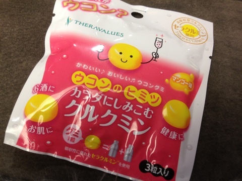 お味は、マンゴー味のグミでお菓子がわりに食べちゃう感じです。 それなのに、ウコンのポリフェノール“クルクミン”はワインのポリフェノールと比べて59倍もあるのが嬉しい。パッケージも可愛いので鞄の中に入れて持ち歩いています。