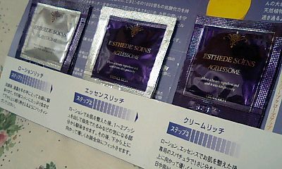 サンプルを2日間使用させてもらいました♪ ラベンダーの香りがとっても癒されるコスメです。 ローションのとろみがすぅーっとお肌に入っていき、 ぷっくりする感じ。 美容液も濃い目のテクスチャーですが、浸透力はよく ハリが出てきます。 クリームも全くべたつかず、もっちりしたお肌に仕上げてくれます。 次の日の化粧のりがとってもよかったので、★6つ♪♪