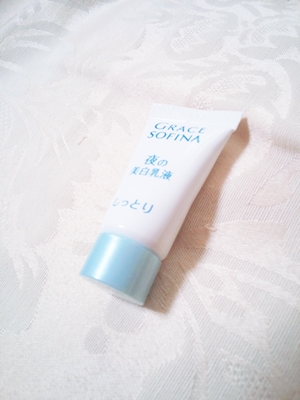 私のおすすめ美白アイテムを紹介します! サンプルでいただいた、グレースソフィーナの夜の美白乳液 です。 保湿成分として重要なセラミドが配合されているので、美白 乳液といえども、保湿効果はしっかりとしています^^ 美白有効成分であるカモミラETが配合されており、普段のスキン ケアから美白対策を取り入れることができます。 のびがいい乳液で、浸透も早く、しっかりとなじませることで 肌がもっちりとしました。 チューブ型なので、量の調節がしやすいと思います。