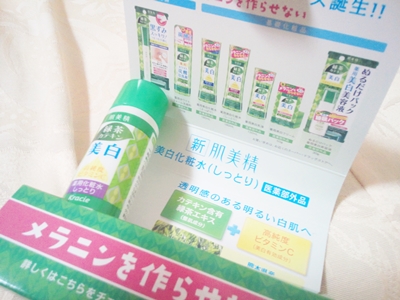 私のおすすめ美白アイテムを紹介します! サンプルでいただいた、クラシエ 肌美精の薬用美白化粧水 です。 美白有効成分として高純度ビタミンCが含まれているほかにも、 肌を整えてくれるカテキン含有緑茶エキスが含まれており、化粧水 自体も緑茶のようなさわやかな香りがします^^ 保湿成分としてはヒアルロン酸が含まれており、手の届きやすい 価格帯で美白にチャレンジができるのでおすすめです^^