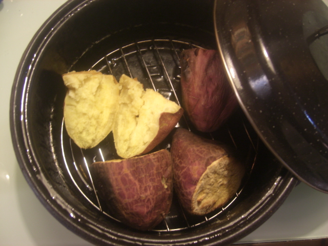 この季節になるとむしょうに食べたくなる時ありませんか?女の弱点!芋、栗、かぼちゃ!最近、石焼いも屋さんもめったに来なくなりました(涙)。以前より減りましたよね?数年前、石焼いもなべを購入。結構、売ってますよ^^確か、980円でした。毎年、これ大活躍です!洗ったお芋を入れて弱火にかけるだけ!約20分ぐらいで出来上がり^^誰でもできちゃいます。たまに向きを変えて焦げ目が均等になるようにだけ注意。それだけです^^買うより断然安いし、家族で楽しめるおやつです。食物繊維いっぱいだし1個食べると満腹!お通じ...