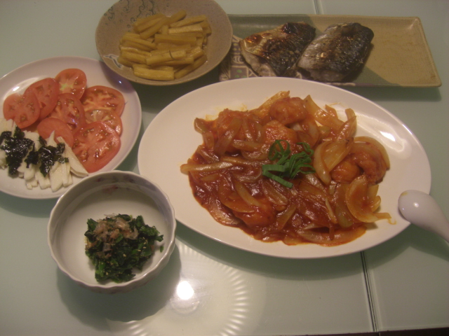 私は主婦歴16年ですが、お料理大嫌いです^^ 手抜きで簡単でできればおいしいというのを目指してます。 自分のダイエットは基本あまり食べない主義なんで、自分の為には作りません。家族の為にがんばってます^^これはスポーツをしてる高校生の子供のメニューです。えび&チキンのチリソース煮。ソースはケチャップなどで自分で調味。玉ねぎを多めに入れてかさを増してます^^調味料は控えめにしてカロリーを少し落としてます。油もリセッタなど使用。ホウレンソウのおひたしもだし&減塩しょうゆ、からし少々入れて作りあえてます...