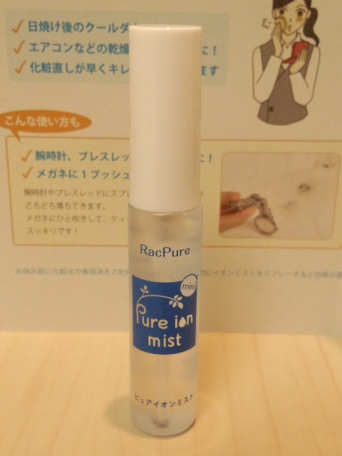 8cc のサンプルを戴きました。 成分は電気分解した天然水100%で、普通の水より表面張力が少なく、ぬるっとした感触で、スプレー缶入り化粧水のような細かい霧とは違います。 クレンジングに使う場合は滴るほどスプレーするので、下にたれ落ちないよう注意が必要です。