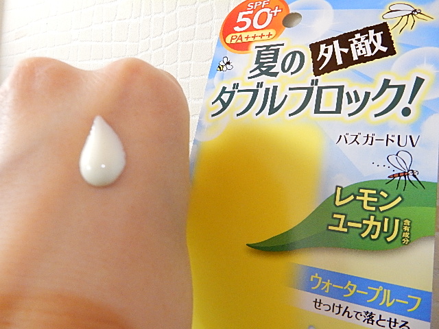 虫除けとUVが一緒になった便利なジェルをお試ししました。 さっそく開けてみると白いクリームですが、すっと伸びる軽いジェルでした。 白浮きしないので塗りにくい箇所も安心してしっかりぬれます。 首などの細かい場所や、肩などの広い部分にも伸びがよく塗りやすいですね。 SPF50+PA++++と国内基準の最高クラスなので、化粧下地も兼用できるのでこれから強くなる紫外線予防に街中だけでなく、アウトドアでも使えます。 UV-AとUV-B波からも肌を守ってくれます。 レモンユーカリ含有成分が蚊など夏の虫に効いてくれそう...
