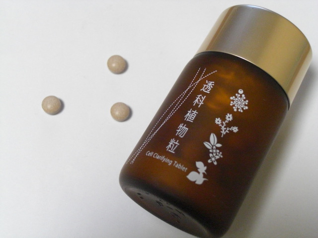 4種のハーブ透科植物配合。 シワ、たるみ、くすみを引き起こす原因に、お肌の内側から働きかけてくれるサプリメントです。 1日3粒が目安。 好きな時に飲むことが出来ます。 少し漢方のような匂いと味で、若干苦味を感じるのですが、小粒で飲みやすく、体内ですぐ溶けてゆきそうです。 美容液の透科植物液とあわせて試したところ、肌の印象が以前より明るくなった気がします。 ハリもよみがえっているような…?? 引き続き飲み、効果を見ていこうと思います。