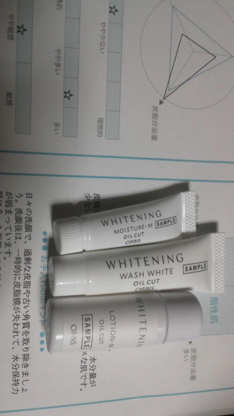 オルビスのサンプルを使用しました! ・洗顔フォーム ・化粧水 ・ジェル の3点と肌チェックシート付き。 自分の肌の状態や生活習慣のアドバイスなど書いてあり「なるほど…!」と思わず納得。 どれも匂いはなく、私は肌がやや敏感肌の脂気味なので肌にも優しい感覚でさらっとしていました。美白成分も配合との事でしたが私にはちょっと効果がなかったように感じました。ジェルも伸びが良く非常に肌に馴染みやすいのですが翌朝までは保湿が持続はしていませんでした。 敏感肌で肌に優しくスキンケアをしたい…!という方にはおすすめで...