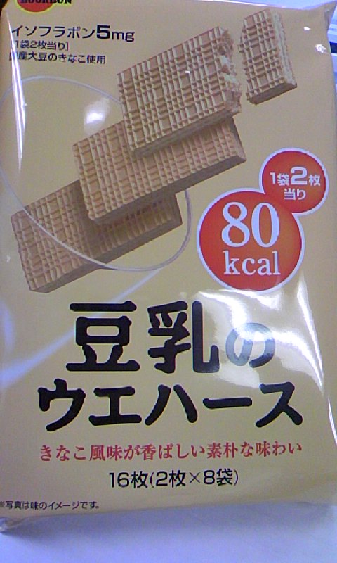 ヘルシーなお菓子です。 小腹がすいたときに食べます。 きな粉の味がするので、 とっても美味しいです。 カロリーも控えめだし、イソフラボンも補給できて、 普通のお菓子を食べるよりいいと思います。