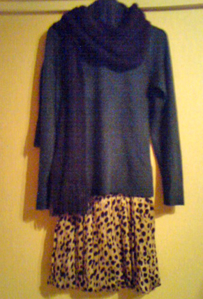 冬物セール初日に新宿ルミネにて1万円福袋をゲットしたので「福袋の中身だけでコーディネート」してみました。色々できたのですべてで1万円ならかなりお得なお買い物だと感じました。 これは2つ目です。淡いブルーのセーターと、ダルメシアン柄のミニスカートです。下に黒のスパッツと黒のヒールを合わせたら可愛いなと思います。
