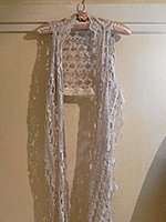 レースのスカーフなんですが、中央に腕を通すための穴が二つあいていて、このようにカーディガンとして着ることもできる2度美味しいアイテムです。長めでレースもゴージャスなので、首に巻くと存在感のあるスカーフになります。紫外線には気をつけたいけどいかにも「日焼けしたくないんです!」というような完全防備な服装ではつまんないから、可愛くおしゃれに紫外線対策したくて購入しました。