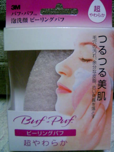洗顔用のスポンジです。 硬さは、 「ふつう」「やわらか」「超やわらか」と3種類あります。 私はデリケート肌用の「超やわらか」を使っています。 見た目も手触りも食器洗いスポンジみたいで、 ごわごわしていて変な感じです。 でも使用感は、古い角質を取り除いてくれているのがすごく良くわかります。 洗い上がりはものすごくスベスベです!! 化粧水もグングンしみこみますよ。 ただ、気合入れてこすりすぎるとヒリヒリするので、 そっとなでるように使ってください。