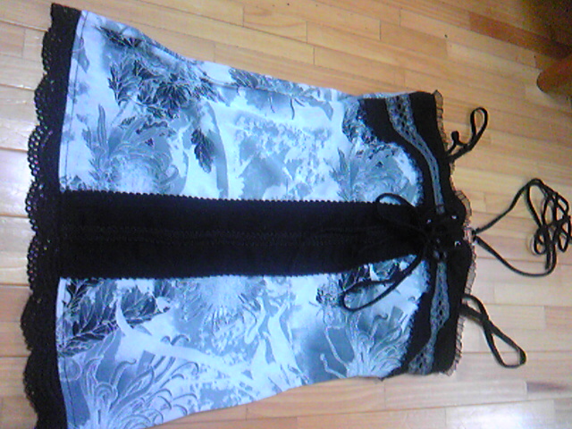 スカートとお揃いのキャミソールです。 こちらも個性的なデザインで気に入ってます。 内側にカップが内蔵されているのでこれ一枚で着れます。 夏らしい薄手のやわらかい生地ですが、透け感がなく、全体がストレッチ素材なので、安定感があります。 この上にカーディガンを羽織ったりして使っていますが、スタイリッシュなデザインなので、暑い日はこれ一枚で外出することもできると思います。