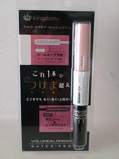 私のオススメメイクアイテムは、キングダム ツーステップマスカラ。 下地とマスカラが一つになっていてコレ1本で太く、長く、「つけま越え」というのが特徴です。 ビューラーでカールさせてから下地を塗ります。 この下地、半透明なので白くならないのが嬉しい! 一般的な下地って白くなってマスカラを塗っても、白く残ってしまうところがあったりするのが嫌で今まで使っていなかったのですが、半透明ってそんな私にピッタリで感動しました。 しっかりとカールさせてから、下地をつけて乾くまで少し待ちます。 私のまつげはコシハ...