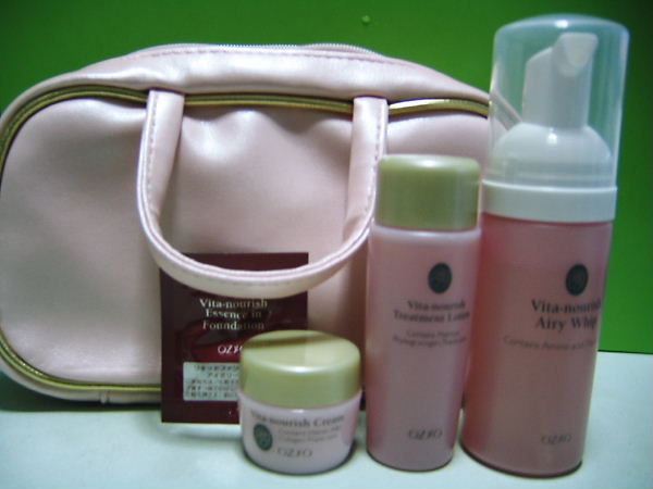2週間分のローションとクリームと洗顔料、ポーチのトライアルセットです。 今、使っているのですが肌がしっとりしてハリも出て、肌の調子がいいです。 サンプルでファンデーションが5色ついていたのですが、それも自然な感じでよくのびて良かったです。 私は乾燥肌なのですが、1日しっとりしてます。