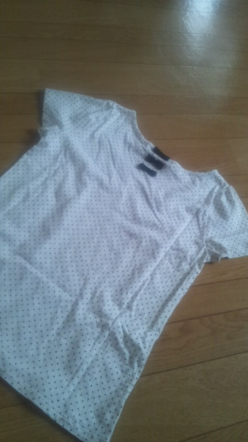バーゲン戦利品 Tシャツを探してウロウロ。 あっち行ってこっち行って。 歩き回って、フラッと入ったら 店員に薦められて気に入って購入!! ドット好きにはたまりません。 画像はバックです。 後ろにはリボンも付いているのがpointです! ジャケットのインナーとしても使えるので、 コーデの幅が広がります。