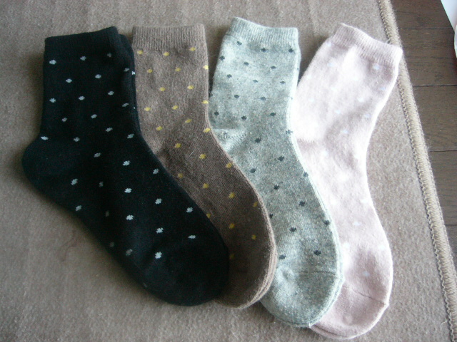 大分寒くなって来て、冷え性の私には辛〜い季節です。 私は寝る時にも靴下をはいて寝ないとダメなくらい、足先は特に冷え切って眠れません。 ついこの前買った靴下を紹介します。 アンゴラとシルクが入った靴下、4足で980円です。 大して高くないのに、あったかさは抜群です! しかも色とか可愛いし!水玉だし! アンゴラは保温効果があるし、更にシルクが入っているのでかかとなどもスベスベになる効果があります♡ 驚きなのは、うっかり濡れた場所を踏んでしまっても、タオルの上でトントン足踏みすればすぐ乾いちゃうこ...