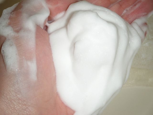 爽やかな柑橘系のような森林浴のような香りがとても良かったです。 でも洗顔後に香りが顔に残るわけではないので、使いやすいと思います。 泡立ちが悪いとクチコミで拝見していたので、どんなもんかしらと思っていましたが、わたしの場合は少量でものすごくもこもこ&弾力のある泡ができました。 手に泡を乗っけて逆さにしてもぜんぜん落ちませんでした。 洗浄力は結構あるようで、さっぱりつるつるになりました。個人的にはしっとりよりさっぱり感が強かったように思います。