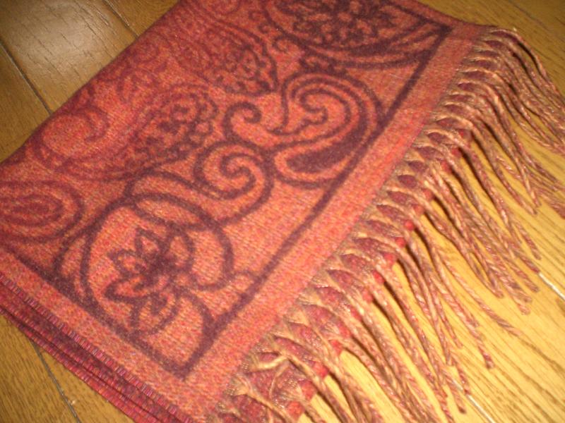 ちょっと大人っぽいマフラーです。 グルグル巻いて使ってます。 値段は、30%OFFで3900円でした。 とっても肌触りのいいマフラーです♪