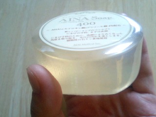 ピーリング石けん、アイナソープ400。 過去記録で、@コスメ固形石けんクチコミランキング第3位。 気になっていたアイナソープを試してみました♪ 洗顔で出来るピーリングと言うのが 手軽で良いな〜と思ったので今回お試しすることに。 同送されていた使用説明書によると、 泡立てた泡を、目のまわりなどの皮膚の薄い部分を外して、 肌の気になる部分やおでこ、小鼻のまわりやシミ部分、 小じわのある上に乗せて、30秒〜1分くらい くるくるとマッサージをしたら、洗い流せばOK! 今3週間目ですが、夜の洗顔時のみ使...