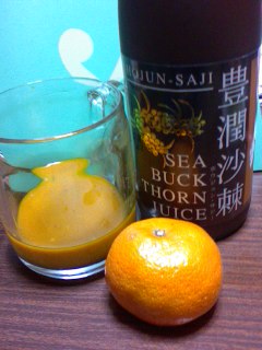 モニターに当選したので、早速毎晩寝る前に飲み始めました。 見た目はドロッと濃厚みたいですが、口に入れると結構サラサラと 喉を通って行きます。 各種のジュースと混ぜて飲むと美味しいらしいので、 今日は家に有ったみかん SS サイズを2個すりつぶして 「 豊潤サジーマイルド 」とミックスしてみました。 みかんの粒粒感が、お腹いっぱいになる感じなので、 今度は寝る前にお腹が空いた時に、ダイエット食として飲んでみたいと思いました。 飲み始めてまだ5日なので、健康状態に変化は感じられませんが、 飲んだ...