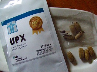 ローズヒップ含有加工食品のこのUPX、皮膚や粘膜の健康維持に有効なサプリメントのようです。 ローズヒップにビタミンが豊富なことは、最近では有名ですね。 中の粒は1回分ごとに包装されていて、病院で処方される錠剤のようでした。 でも1粒が大きい!普通のサプリメントの3倍くらいの大きさでした。 4粒飲むのに、結構お水も飲みました。 使われているのが、オーガニックエリアの農場で栽培された野菜や果物やハーブだそうです。 説明書きを見てみると、たくさんの食品が使われているようです。 1日4粒、5日間飲んでみ...