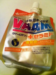 秋おすすめヘルシーフード☆ ヴァームゼリーの+セラミドです。このシリーズは運動前に飲むと17種類のアミノ酸の働きで体脂肪を燃やしてくれるという優れものです。これは体脂肪燃焼に美容サポートとしてセラミドが含まれています。ダイエットスペシャルに比べるとカロリーは多いですがそれでも35ckalと低カロリー。これはオレンジの味ですっきり飲めます。