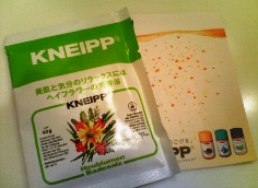 ドイツのKNEIPP(クナイプ)のバスソルトです。クナイプのはハーブの製油と岩塩を元に作られているバスソルト。 こちらのヘイフラワーの香りは、美肌効果もあるらしく使ってみました。お湯は明るい黄緑色になります。ぬるめのお湯で15分ほど浸かっていると、この匂いがバスルーム全体に広がり、アロマ効果のおかげかとてもリラックスします。発汗作用があるのか、上がってからも体がポカポカしていて冷え性の私には嬉しいです。香りが強めでちょっとスパイシーな感じ。この匂いは好みがあると思いますが私はくつろげます。いまのところ美肌...