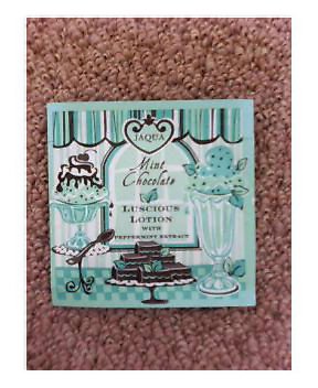 サンプルが届いたので、早速使用してみました。 「お菓子なコスメ」らしく、チョコミントの甘い香りが 手に取った時からしました。 少量でものびるのが意外でした。 お風呂上がりに付けたのですが、翌朝でもほんのりと チョコミントの香りとしっとり感がありました。