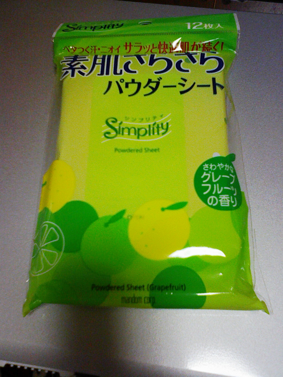 体全体に使える、パウダーシート。 グレープフルーツの香りが気分をリフレッシュさせます。 これも少しヒンヤリしますが汗を掻いた後にはスッキリしますね。 肌がサラサラになって使い心地が良いです。