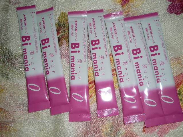 モニターに当選して頂きました、有難うございます♪ スティックタイプで7本入り。 中身は粉末状で水に溶けやすかったです。 味は、ほんのりピーチ味…と言うより、ちょっと酸っぱかったです。 というのは、私が酸っぱい味が苦手だからかも^^; 夜に1本1週間飲み続けまして、効果は劇的に良い…という訳ではなかったのですが、肌が良い状態に保ち続けました。 朝起きた時に肌触りが良かったり、メイクのノリが良かったのは嬉しかったです♪
