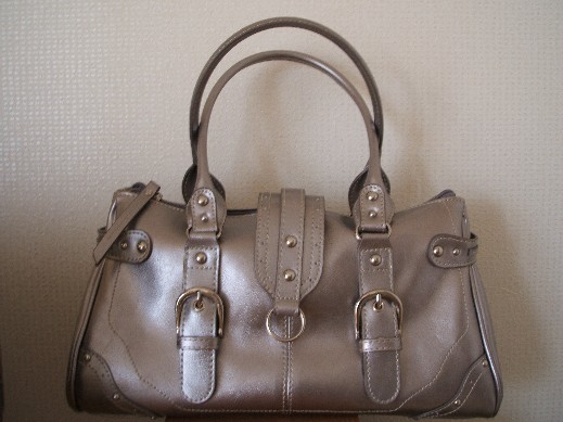 ピンクがかったシルバーのメタリックなミニボストンバックは、どんなスタイルや色にも合わせやすく、ちょっとしたお出かけにも大活躍しています!