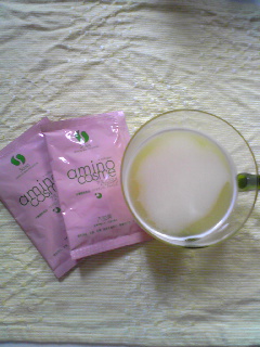 今回、ソヤファームさんの 『アミノコスメ+コラーゲン』のモニターに当選しました◎ 水に溶かして就寝前に飲む・・・。 味は少し苦味がありますが、 おいしいです。 7包のサンプルでしたが、 今まだ2包しか服用していませんので 効果は良くわかりませんが、 この暑い時期、氷を入れて寝る前に飲んだらいいかもしれません☆ コラーゲン特有の張り付く感じはないですよ(><)