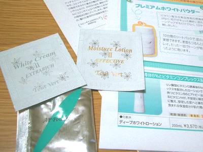 ビタミンC誘導体のパック後ローションを・・・ ベタつくのが難点かな〜と思いきや!? これはあっという間に肌に吸い込まれる感じ! ベタベタモチモチ→サラサラ〜(*´∀`*) 美白効果はサンプルだけでは実感ないけど 皮膚科で処方された化粧水よりも 使用感はイイかも。