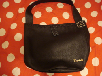これは一目惚れして、ちょっとお値段が痛かったけど、 思わず買ってしまった1品。。。 だって、かわいいんだもん!!!!! 何にでもあうし、白もあったけど、友達がうちはやっぱり黒だっていってたので黒を購入。 買って、ホントに良かった!! ワンピにもジャケットにも何にでもホントに合う!! しかも見た目より結構入ります!! これはこの先、長いおつきあいになりそうな予感♪ どんどん皮の味も出て来そうです!