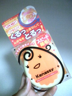 これからどんどんあったかくなるのでボディケアを。 除毛パフです。 今までにあまりみない除毛方法なんで買ってみました。 パフにピンクとオレンジの面がついてて、ピンクの面でくるくるまわして除毛します。 うーん、やり方がまずかったのかあまりうまく除毛できてないかと思います、残念orz ただそのあとに、オレンジの面でくるくるまわして仕上げるんですが、肌がつるつるになります^^ 安かったし、これだけでも買ったかいはあったかも?? ボディクリームニガテな人にはいいかも。