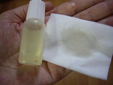 色は透明な黄色、においは少しすっぱいようなにおいがしました。 コットンにとって、数回パッティング。 ばたつき感はまったくなく、肌表面はさらっとしましたが、内側からもちっとしました。