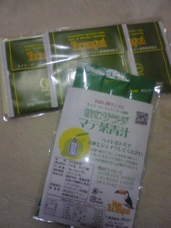 マテ茶&マテ茶青汁 サンプルありがとうございました 飲むサラダ?と言うことで ちょっと美味しさゎ 期待してなかったのですが… さっぱりとして 普通の緑茶のように飲みやすい 子供達にもなかなか好評でした ティーバックで手軽に入れることも出来、これでたくさんの栄養が取れるのなら 子供にも どんどん飲ませたいです。 もぅ一つ 青汁ですが… これは あんまり美味しくない…(笑) もっと 青々してるのかと思ったけれど マテ茶青汁なので お茶を濃ーく、苦くした感じ… 栄養あるなら サンプルだけは飲みきろうと思ってますが…(笑...