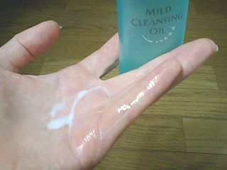 柔らかなパフできめ細かい泡をたてて お肌をなでるように洗うだけでしっとり洗い上げてくれます。 クレンジングオイルは水になじむとさらっと洗い流せてしまうので 頭皮のクレンジングにも使えます。 髪の毛に残らないので夏場のべたついた地肌にオススメです♪ 写真はオイルと水が混ざって乳化したところ さらさらと下に流れ落ちてしまうので手の上にあまり残っていません
