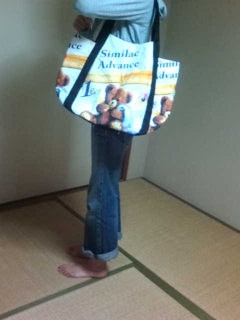ネットショッピングで1260円で購入しました。 今まで使っていたのが汚れてきたのと、冬っぽい柄だったので、夏用にさわやかなクマちゃん柄を選びました。 丈夫ですので、牛乳、ジュース、ビールを買ってもしっかりしています。 しかし、入れすぎで重くなるのを気をつけないといけませんね・・。